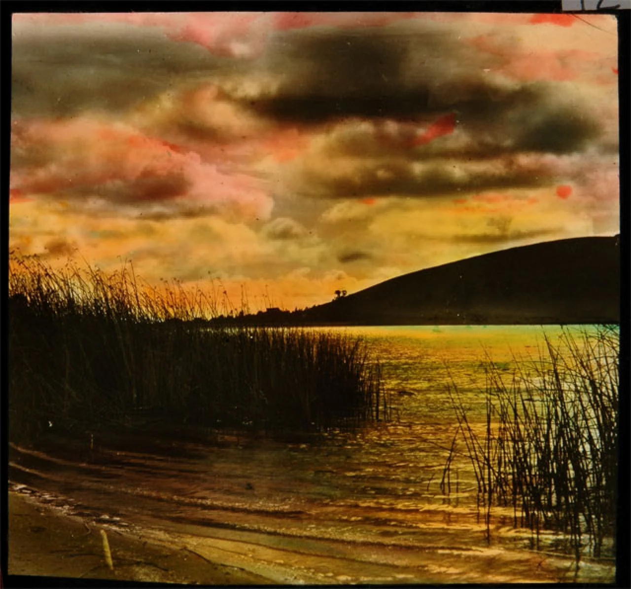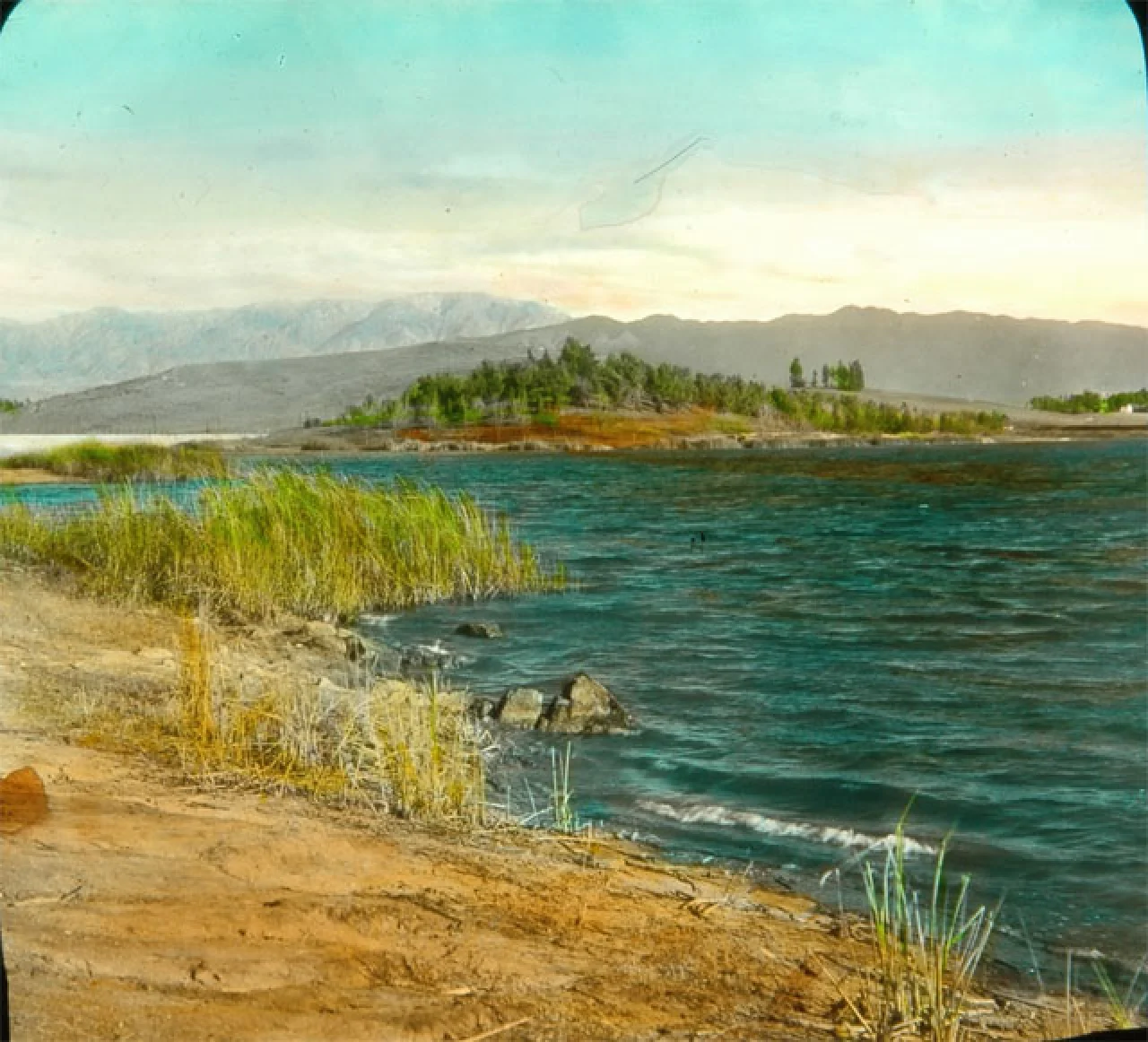 Two hand-colored lantern slides of the Silver Lake Reservoir (Autry Museum of the American West)