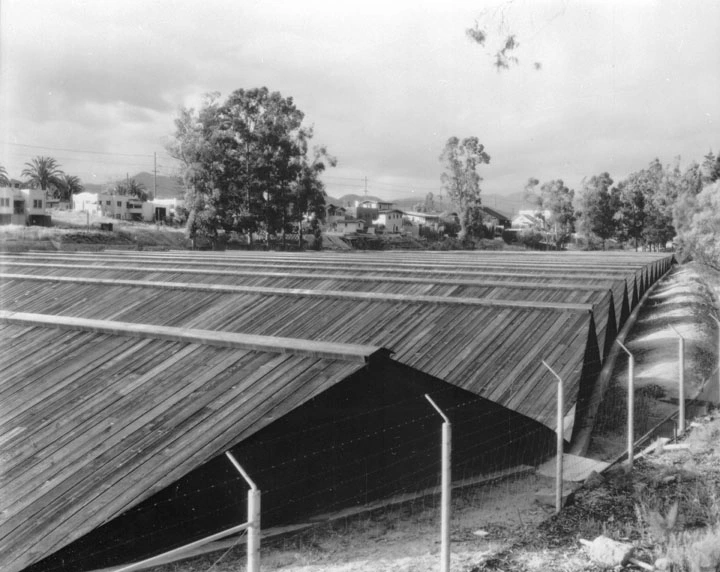 The smaller Ivanhoe Reservoir was covered with a structure made of wood and roofing material in order to protect the water quality.