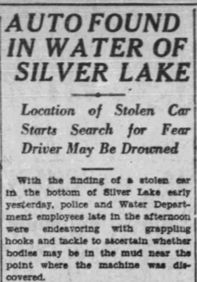Although the Silver Lake Park plan was abandoned, people continued to enjoy access to the reservoir for the time being. The accessibility did not come without occasionally tragic costs. The first death in the reservoir was likely the 1910 suicide of William “Daddy” Richardson. There was also the accidental drowning in 1912 of a young, Benjamin Halprin. His father sued the city, afterward, insisting that the city install a fence around the water. The Assistant City Attorney countered that installation of a fence was unnecessary, though, and no fence was built. Two more unsupervised children, Arthur Donald Gordon and Orland Bernard Gordon, drowned in the reservoir in 1914.